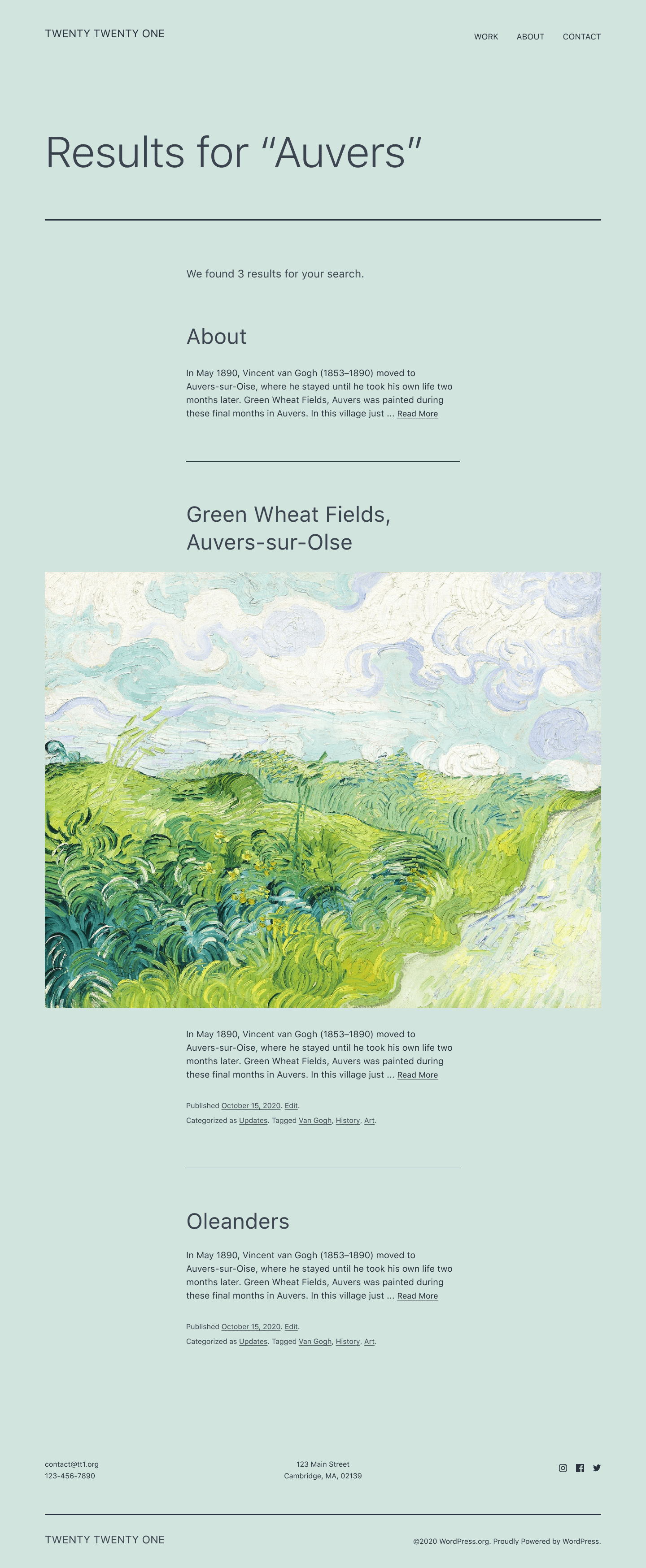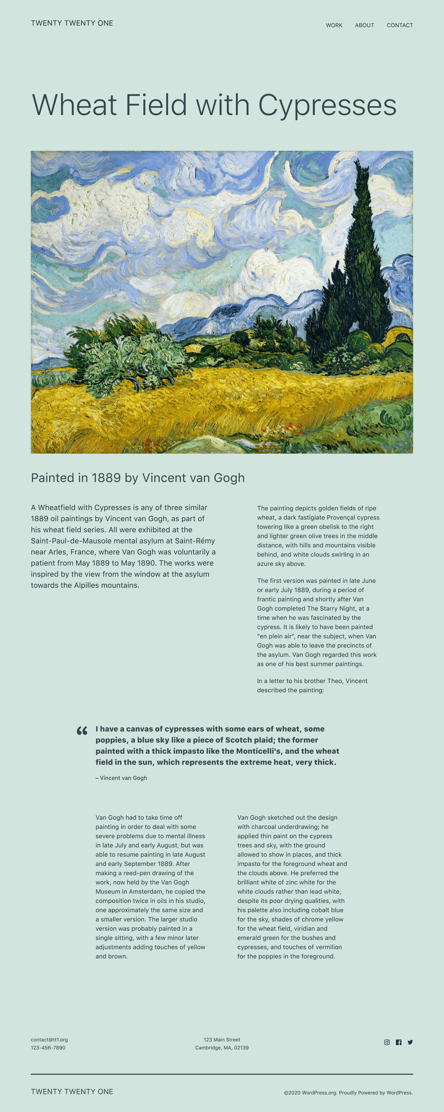 >> This theme uses a limited color palette: a pastel green background color, and two shades of dark grey for text. The dev team will be bundling the Twenty Twenty – One theme with some additional color palettes, including both a white and a black color scheme. But why pastel green?